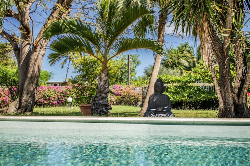 La villa de standing (200m2) se trouve dans un grand jardin arboré à deux pas du lagon avec accès direct à la plage, à proximité de restaurants comme la Marmite, le Manta ou encore la rondavelle "Chez Denis".